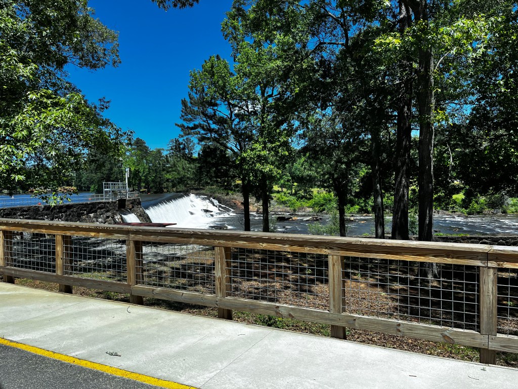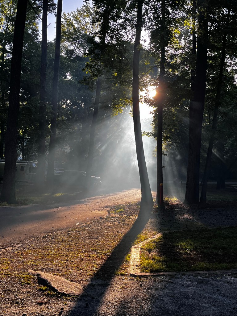 May 1: After a successful day one we were off to our next stop to High Falls State Park in Jackson, GA. This would be Jo-Ann’s first experience without sewer hookup. That means rationing how much water goes into our holding tanks. Forty gallons capacity fills quickly washing dishes and showering etc. Oh and you need to stop on the way out and empty those tanks (my job). We also experienced gum tree flowers on the ground. These aren’t pretty cute flowers but brown hard spikes golf ball sized dog tripping hard to walk balls. And not one or two but thousands. Spoiler alert this won’t be the last time you hear about these nuisance balls. All said and done Jo was a trooper and we had some nice walks and decide it was great we brought paper plates to save water down the drain. I should stop here and explain my state of mind with these nuisances and why they are important. Jo is from Brooklyn and camping growing up was spent in a real bed with a roof and walls around her at the Cedar Lake cabins her family owned. Jo has made it very clear this was a trip she knew was on my bucket list and wanted to do before I died and wasn’t her dream but nightmare. Travel cross country living in a 215 sqft Airstream with me and two dogs made her let’s just say anxious. My hope was that my bucket list before I died didn’t result in my premature death. And I wanted my girl to have fun. Weather, spiky brown golf balls that seemed to multiply like tributes, water rationing and long travel days and Jo was still hanging in there. Next on to Chattanooga. Please have full hookups and no spiky balls. Onward toward Montana.