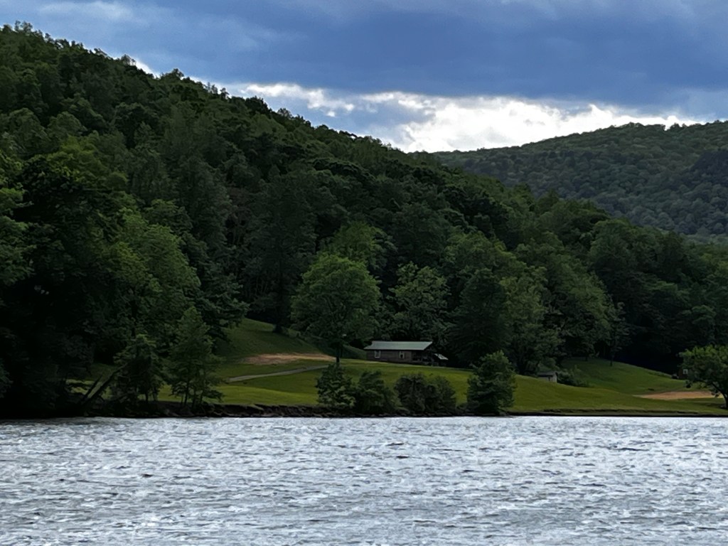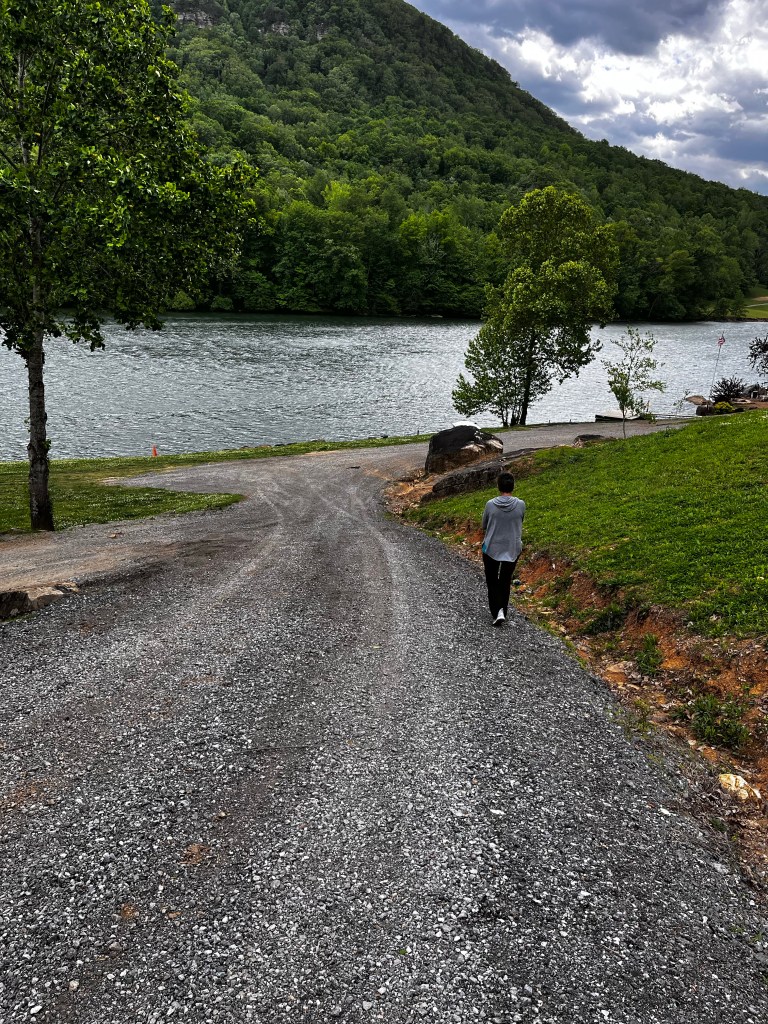 May 2: Day 3 we head toward Chattanooga TN four first three day two night stay. My planning app said 220 miles 3 hours 33 minutes. What the app doesn’t do is account for bio breaks and the inability to safely drive the speed limit in traffic pulling 6500# of Airstream plus 7000# loaded Tundra. Stopping is so important. So I planned on four hours and we were right on track until my GPS suddenly blinked changed directions and sent me past Chattanooga saying it added an hour to our trip. Thankfully I had the number of the campground owner and she got us turned around about the same time a different GPS app sent me the same way she said. Pheww only a twenty minute detour. That said the rest of her directions involved several lefts somewhere after Walmart onto Suck Creek (not a typo and I didn’t the creek looked all that bad) and then a left at a canoe that if we missed it would result in us having to turn around at the top of a big mountain. Did I mention I was driving a long pickup followed closely by an even longer Airstream? Well Jo’s eagle eye saw the canoe and we were able to swing left into a road that met the road at an uphill angle without us running over any curbs or small pets. And then we really saw the road to the campground. Barely wide enough for two cars and rock ledge right up to the road. Jo sucking in breaths while mentioning how close I was to those rocks coupled with the oncoming locals who had been drivers for the Dukes of Hazzard movie driving 60 mph plus got me just a bit sweaty. Well we made it to the campground driveway and as his wife promised on the phone her husband was waiting by the entrance on his four wheeler. Delon (“it’s a D with the thing you mow at your house” according to Delon who lived here his whole life) said getting our trailer parked would be a little tricky. I could head down a short way and attempt to swing into an adjacent small cliff plateau or choice #2 if I had four wheel drive I could drive down to the river and turn in a bigger area then come back up to our perched site and drive past and back in. When I saw choice one, and the small area with a 20 ft drop if I got it wrong, I decided to drive down to the river. When I told Delon he breathed a sigh of relief and said good choice. Understand I hadn’t seen the choice #2 four wheel drive hill yet. The reason I hadn’t seen the hill was that it was so steep I couldn’t see it over the hood of my truck until I was a truck length down the hill and committed to my choice. The hill ended with a two truck wide landing and then a BIG river. ( Tennessee River). Well with Jo’s help we stayed dry, got back up the hill and backed in. Sewer was very far from my trailer but Delon offered us a third 15 foot hose connection and we were set. Once set up we realized just how beautiful or site was overlooking what I imagined Huck Finn’s River looked like with a pristine mountain across the river sans houses. Our hosts were great bringing us free firewood and giving us some gems for dining and tourist sites/sights. We saw a waterfall 260 feet down an elevator followed by a long walk to a waterfall coming out of the roof of the cavern 1100 feet below the top of the mountain. Ruby Falls is a love story with drama around the depression and the loss of the waterfall attraction. We stopped at a little store up the road to see if they had postcards (who knew people don’t send postcards anymore). We were on our quest to send a postcard to the grandkids from every state which turns out to be a difficult quest. Jo went in only to come back out gesturing for me to go in. Turns out the store is owned by the granddaughter of the discoverer of the mine and had a display big clothing and the original head lamp used in the 17 hour crawl that resulted in the falls discovery. The rest of our stay was great and relaxing with time spent watching otters and fish jumping along with the occasional barge and tugboat. River Life RV Resort should be on your list if you’re ever RVing through Chattanooga.
