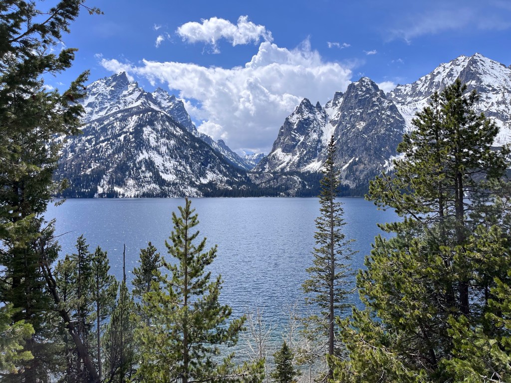 Well after getting patched up we headed to town for a lunch where we took out sandwiches and sat looking out over Lake Jenny at the Tetons. Blue sky overhead as all the rain had gone away.