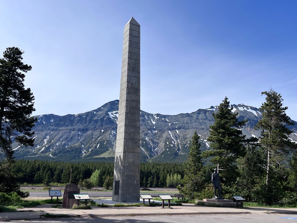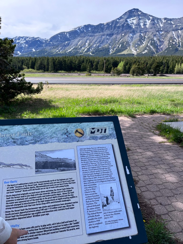 We took a ride toward east Glacier (we were at West Glacier) and made it to the Isaac Walton Inn where there is still an active train depot. The Inn was built by the railroad back in the day to have extra engines idling waiting for trains that needed a push over the Continental Divide. The trains out here are plentiful and massively long so much so I thought one train must have been two trains before I realized we were passing the same one. No wonder the trains need a push. The trains go along some amazing cliffs and tunnels beside rivers that are an engineering feet. The pass they and RTE 2 go through was a pass that was discovered by John F. Steven’s age 36 from Gardiner, Maine. The Marias Pass had long been known to the Blackfoot Indians and white men were afraid to venture into their territory for years. Stevens braved snow, cold and the unknown following the Marias River until he found the low point known as the Marias Pass. At 5213 ft above sea level it wasnt all that low but lower than others and was selected to be the route for the Great Northern railroad and later Rt 2 that goes from the west coast to Maine through Canada at times making it an “International” road. No wonder they needed to build an Inn and switching RR yard to house extra engines not needed for all the trip but needed just to push trains over the divide. https://en.wikipedia.org/wiki/Marias_Pass. You will see a statue of William “Slippery Bill” Morrison was a prospector and woodsman who had squatters rights at the summit of Marias Pass. When he heard that the Great Northern RR was planning a track through his land he opened a bar in his shack on 160 acres. He was a Forest Ranger and at one point before or after this he was reportedly losing at cards and excusing himself from the table never returned. Another quote attributed to him was from a time when a visiting woman from away asked him what people did for a living in this God forsaken place. His response was “most of us make a comfortable living minding our own business” I am honored to share his name lol. Look him up. https://foresthistory.org/research-explore/us-forest-service-history/u-s-forest-service-publications/region-1-northern/the-flathead-story/table-of-contents/chapters/early-history-flathead-national-forest/