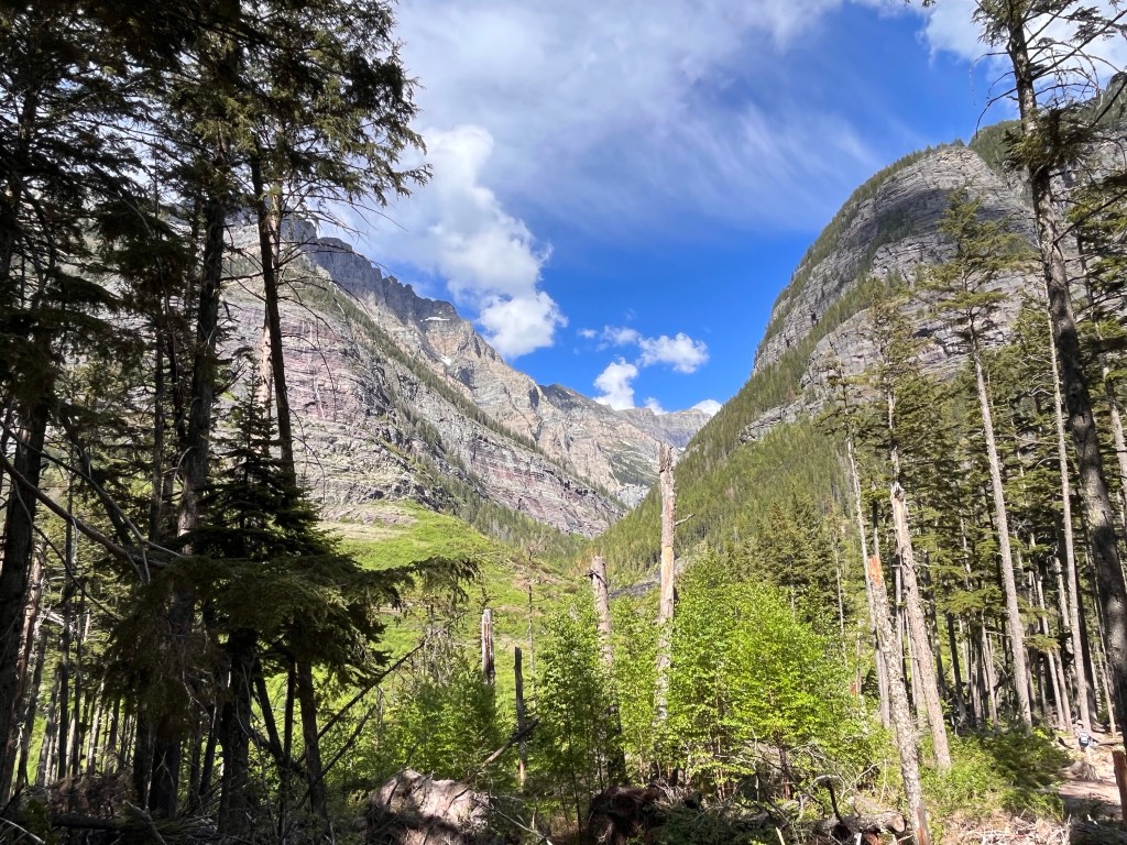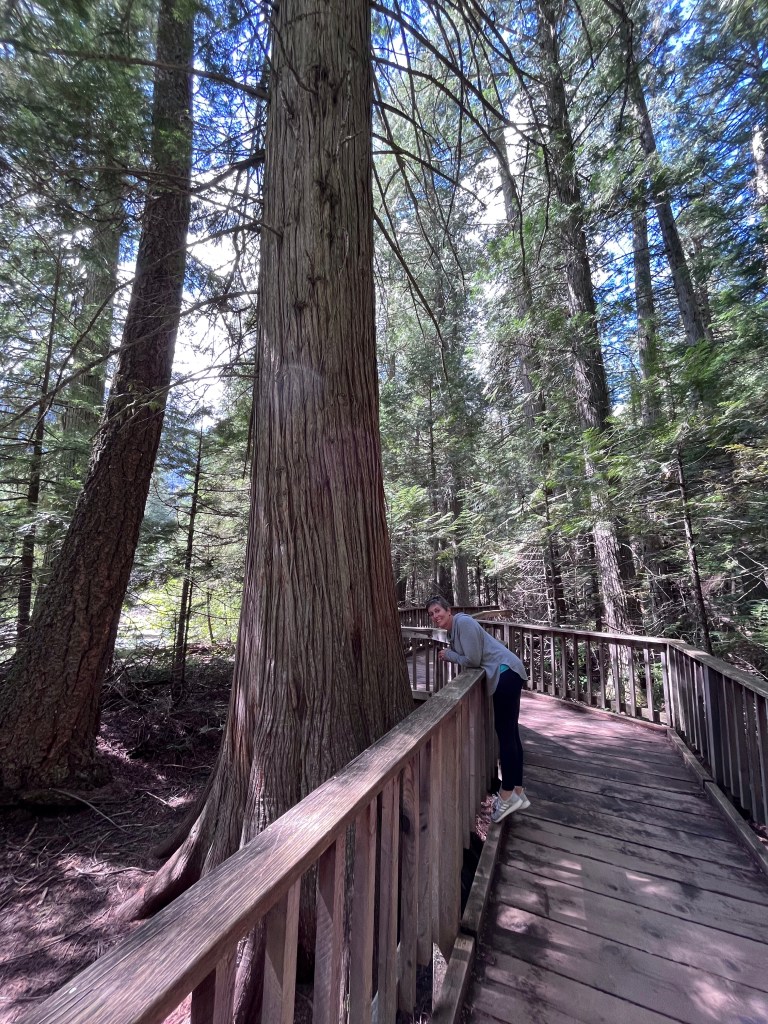 And our site #1 was very spacious with a large lawn, fire ring and picnic table. 50 amp service and new bathrooms and laundry nearby. It is also located adjacent to the park which was a 2 minute drive away. We knew that on a normal year the entire going to the sun road isn’t usually open til mid July so with all the snow this year figured much of the road would be closed. I was actually happy that the road was open all the way to Avalanche and the trail to Avalanche lake.