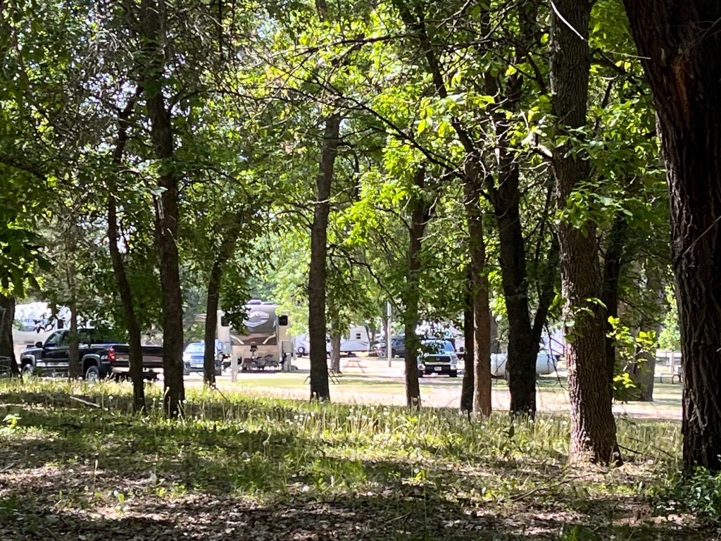 The St Cloud campground was not so easy to get to using the RV Life GPS that supposedly was made for RVs to avoid low overpasses etc. Well this time it took us through the city at rush hour. Not the first time in traffic for us but in retrospect not necessary. The good news is that it brought us by a Great Clips (my hair was getting to look like the absent minded professor according to Jo) and several dispensaries (our endless quest for pet CBD which seemed to be helping Maddie’s hips and appetite). We checked in and because it was a two day stay we stayed put for the night. The weather being warmer meant no noisy heat pumps or gas furnace. Nice to sleep solidly.