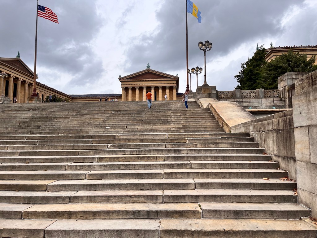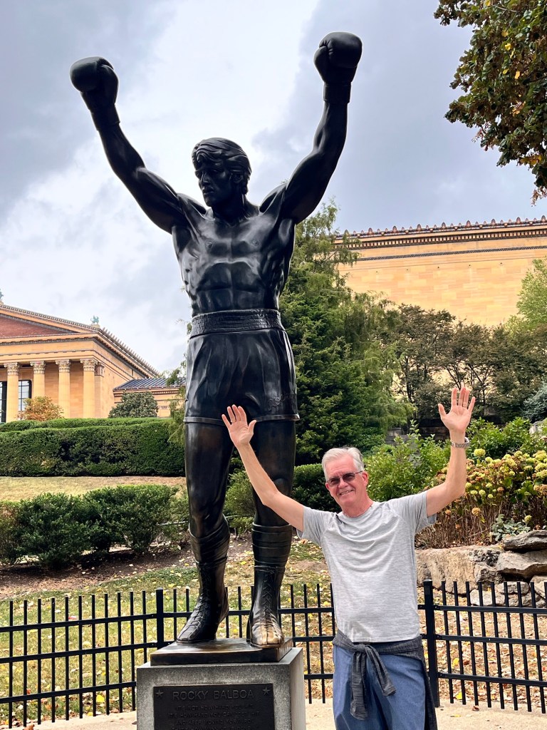 The next day we had a little time before heading to my son’s place for dinner so we decided to check out the “Rocky” steps. For you youngsters reading this it was a movie about a prizefighter who despite all the odds made it big in part by using the Philadelphia Museum of Art steps to train. Jo ran up the steps and I took pics with the statue and of Jo running up the steps lol. Oh and our Pomapoo also ran up the steps.