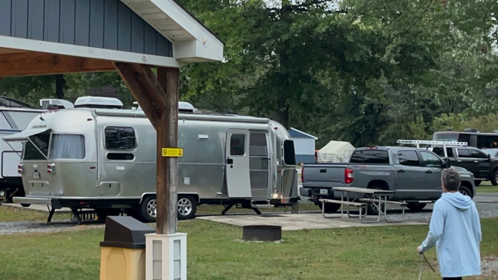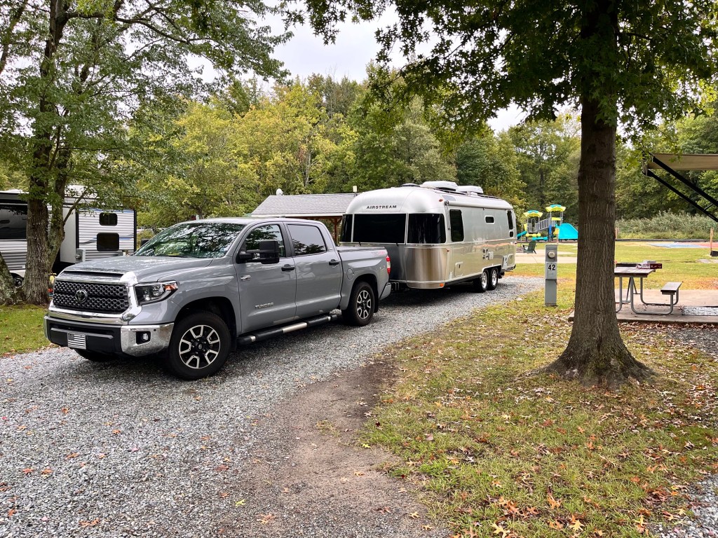 We actually left right at the planned time of 6 AM. A new record for us. This was after an immense amount of cleaning and winterizing our Maine home. Jo is very particular about cleanliness at all times but when we leave and when we arrive home its all hands on deck and a clean home is made sparkling. Not an easy job with kids I mean me and Mocha tracking in lol. Well after a rather sleepless night we took off right at 6 for Philadelphia. The new RV GPS I purchased is supposed to keep me out of scary roads, parkways, low overpasses and bridges . It said the quickest RV safe way was to go through NYC and across the GW bridge rather than my sometimes western route using 84/684 and the Garden State. Did I mention a sleepless night pre trip thinking about the narrow lanes and swerving NY drivers lol. The GW bridge is stressful driving my pickup over without my Airstream, well to make a lonnnng trip story short traffic was a consistent mess all the way to our campsite in Southern NJ near Philly. What should have taken 7 hours took almost 10 but we made it safely and checked in to a nice campground.
