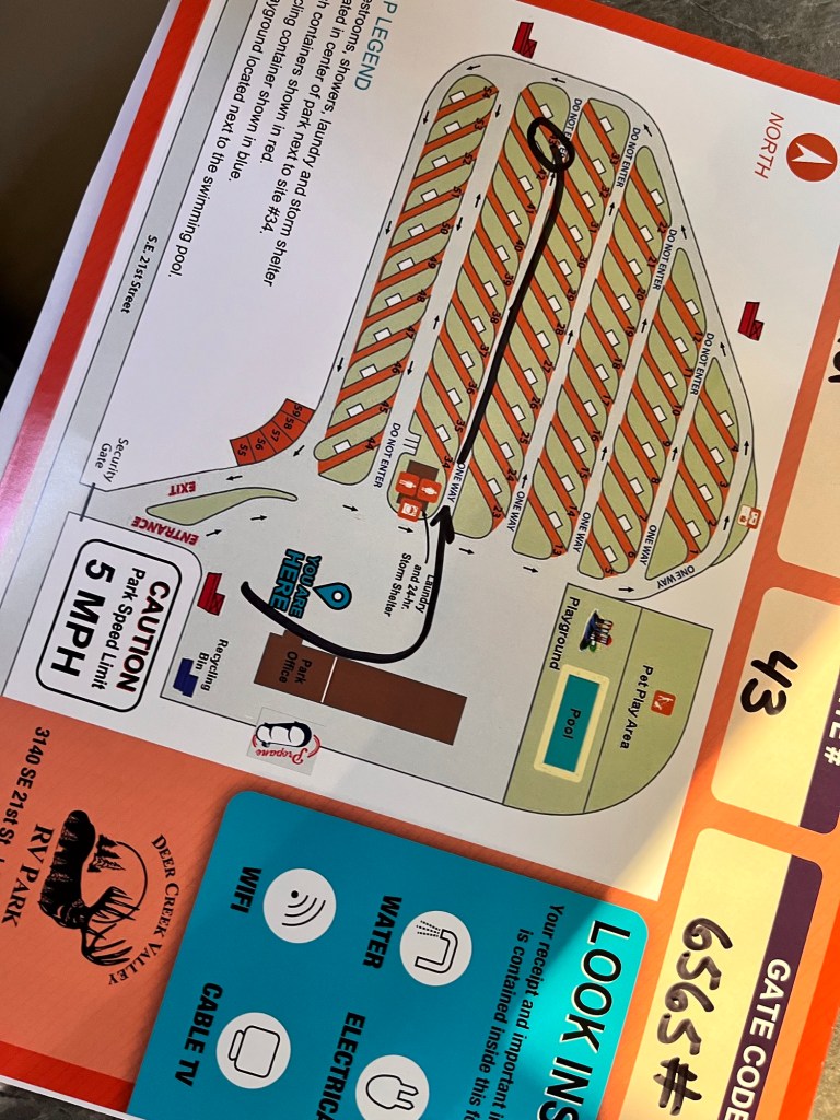 After 290 miles and about 6 hours with stops to stretch we arrived at Deer Creek RV Park. The gentleman who checked us in apologized for not putting us with the “others” and commented about us coming from Utah. I was tired and as long as we had a site I said yeah yeah and went to our site. About an hour later 4 Airstreams pulled in with Utah plates and parked next to each other lol. So that’s what he was talking about. Since leaving Airstream we have had many. Comments and questions about us going to “The Rally”. There must have been many Airstream clubs having a Rally which they do but we were lone wolf Airstreamers lol. It was fun to see bigger and smaller and newer and older Airstreams at every campground though.