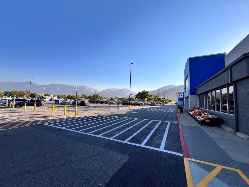 We headed out the next AM after a Walmart quick stop for bottled water (a way to avoid altitude sickness is to acclimate at increasing altitudes and drink LOTS of water). The Walmart had a beautiful backdrop.