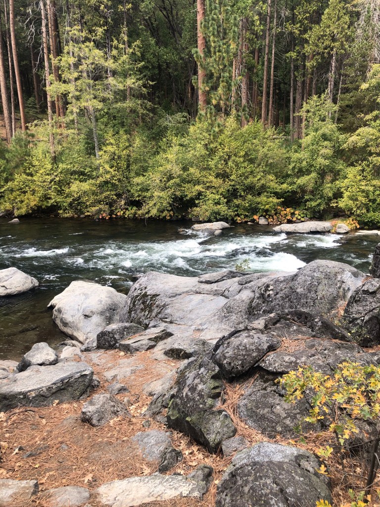 After a bit of shopping we headed north of Murphy’s to the National Forest where I heard there were accessible streams. I stopped at the Ranger station to confirm it was legal to pan in the forest and she said it was and unlike the White Mtn Forest in NH I did not need a license. So with Jo being a good sport we headed out. And found the river.
